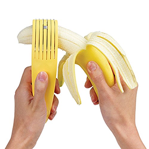 Banana Slicer - Banana Chopper Banana Cutter Fruit Slicer Hot Dog Cutter – Perfect for Fruit Salads, Acai Bowls, Cereal Toppings, Ice Cream Sundae – Stainless Steel Blade