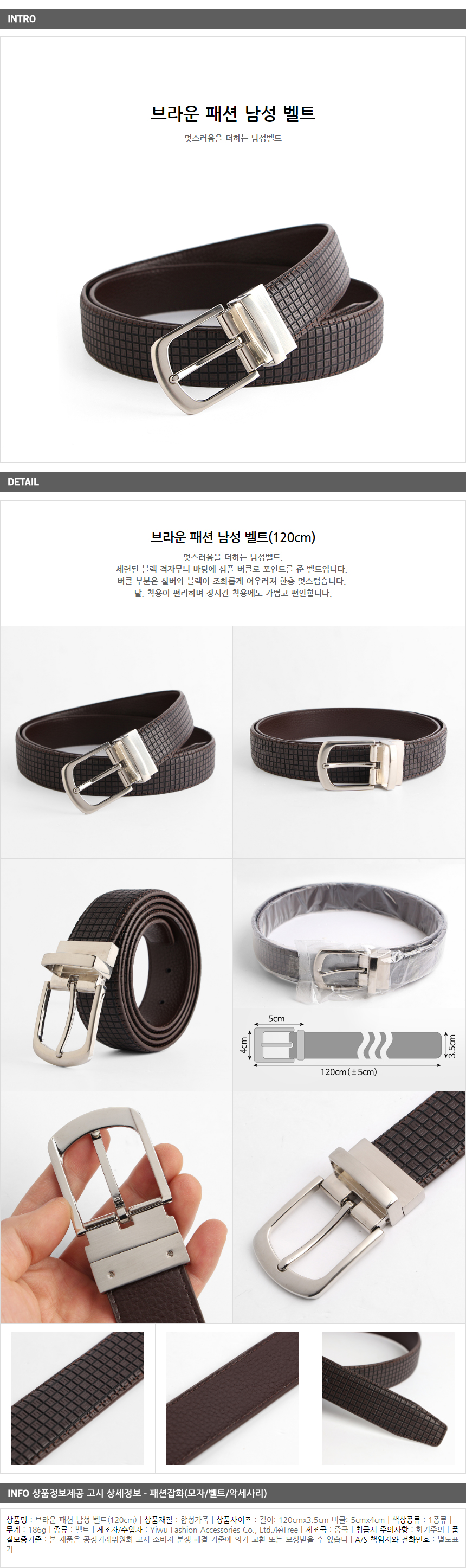 <상품명 : ZP8 브라운 패션 남성 벨트(120cm)>