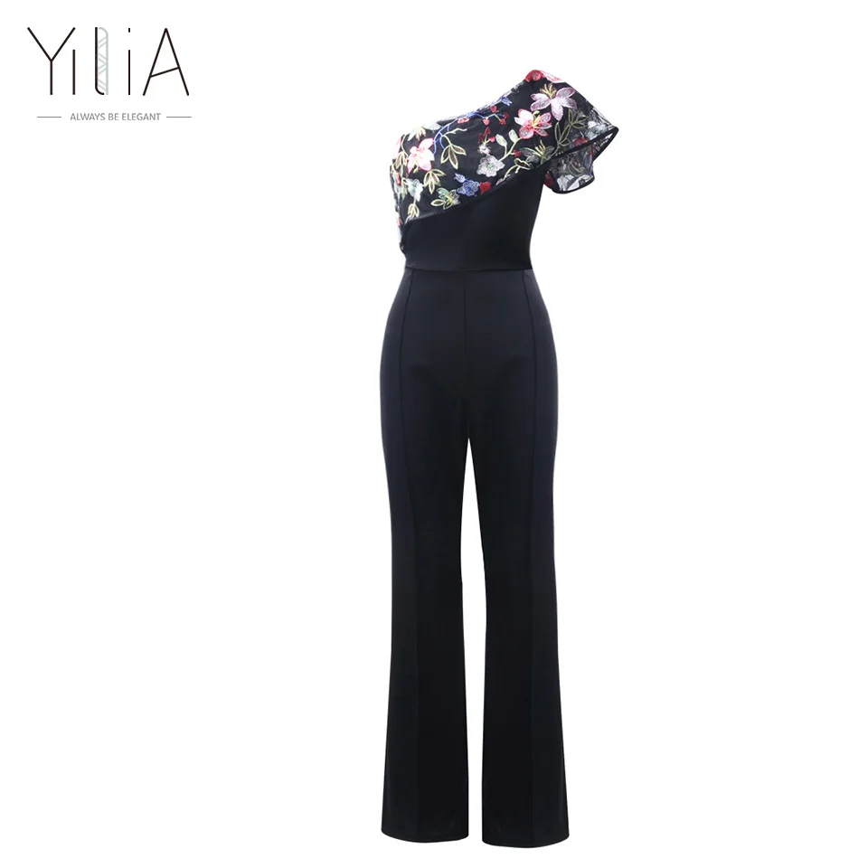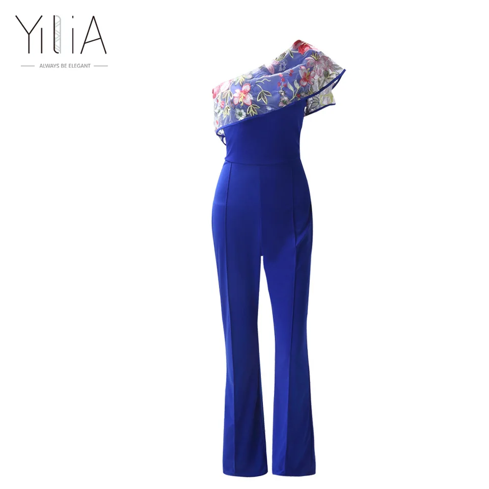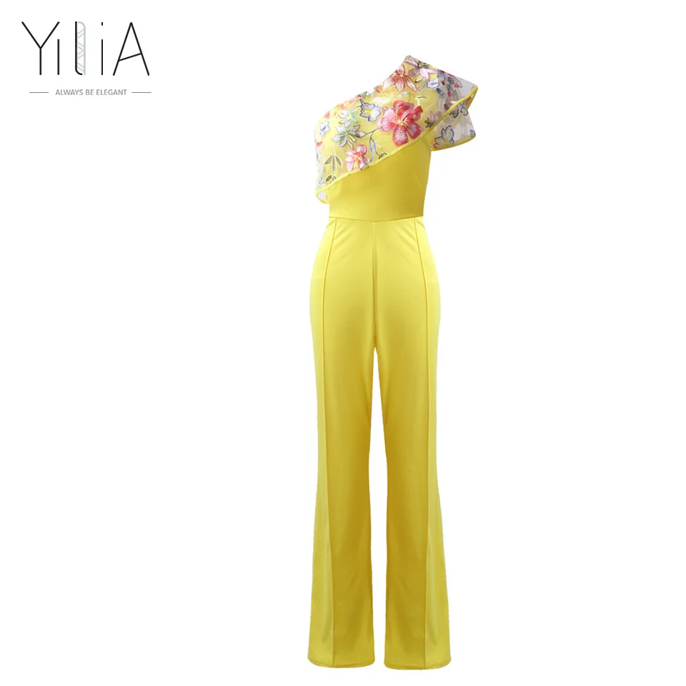 Features: One Shoulder,Ruffles,Embroidery