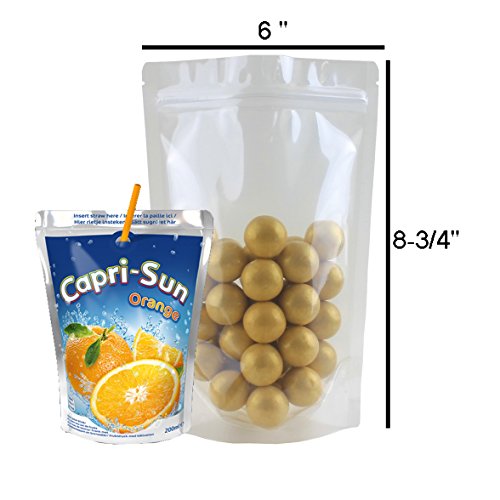 AwePackage Clear Zipper Stand Up Pouch Bag - Clear Front Back Heat Sealable Zip Lock (50, 5 Oz)