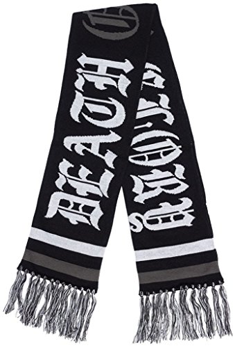 Studio : Sourpuss Publisher : Sourpuss Binding : Apparel Product Description Death Or Glory Knit Scarf Black By Sourpuss. The old English lettering of the Death or Glory Knit Scarf in black, white and gray are sure to keep even the toughest guys snug as a thug in a rug. Jaquard Design. 100% Acrylic. 57" x 8" 0