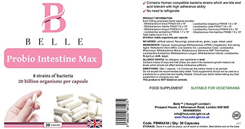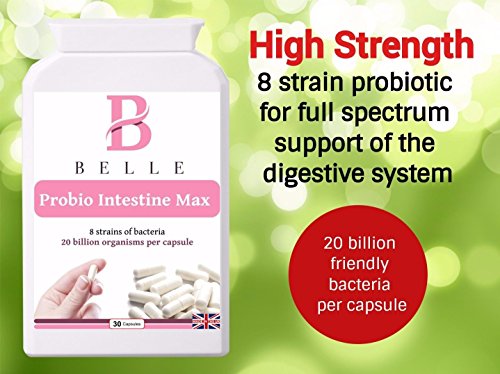 Belle® Probio Intestine Max is a practitioner-strength, multi-strain probiotic supplement with 20 billion friendly bacteria per capsule - equivalent to 40 pots of probiotic yoghurt, but without the added sugar, dairy and fat. It provides 8 strains of friendly lactic bacteria which should inhabit a healthy gut, and offers full-spectrum support of the upper and lower bowel. Micro-encapsulated for acid resistance, this probiotic contains human compatible friendly bacteria strains which are bile and acid tolerant with high adherence ability - no need to refrigerate and guaranteed to provide 20 billion live bacteria per capsule for up to 12 months. It has been specifically formulated for natural health practitioners who treat digestive and intestinal disorders. It is ideal for use following antibiotics, travelling abroad and colonic hydrotherapy treatment. Contains no added: artificial colours, flavourings, preservatives, gluten, sugar, wheat or yeast. Suitable for vegetarians. Allergy advice: In a base of maltodextrin (non-GMO). Contains traces of soya and milk (these are used in the bacterium growth medium) at levels which should not affect lactose intolerance sufferers. 0 |