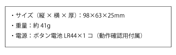 ●電源:アルカリボタン電池LR44*1個