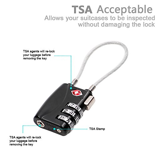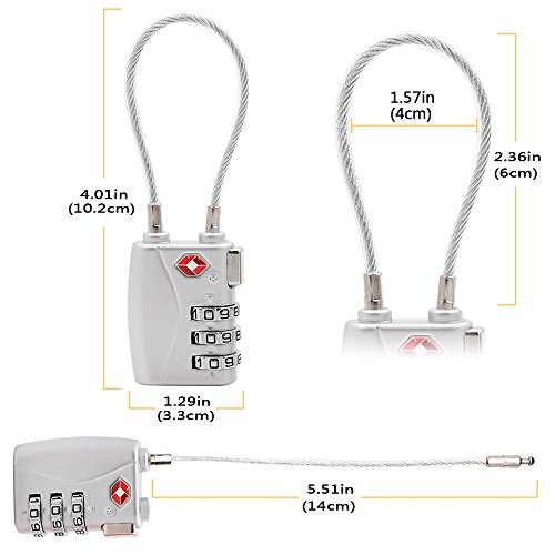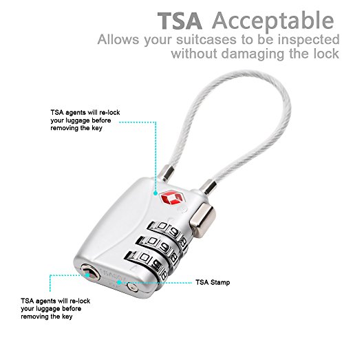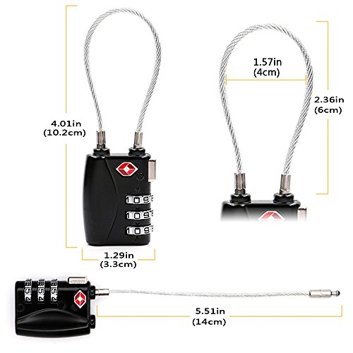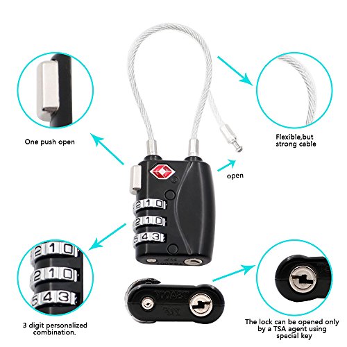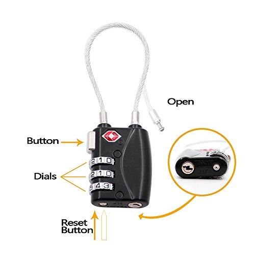 -TSA Approved Padlocks that can be unlocked and relocked by TSA officers without having to break the lock open. -The cable of the lock is flexible and strong that could be adjust to any shapes. -Super convenient to set 3 number code combinations. -Perfect for travel use and can perfectly be used for securing personal belongings when you at work, at Gym, at Coffee Bar or at School. -1,000 possibilities resettable combos help you set a combination that you won't forget. -The 3-digit resettable combination lock is super easy to set and use that you never need a key.