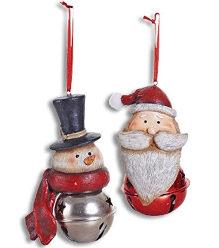 Santa and Snowman Christmas Bell Ornaments (set of 2)
