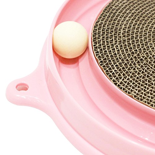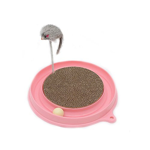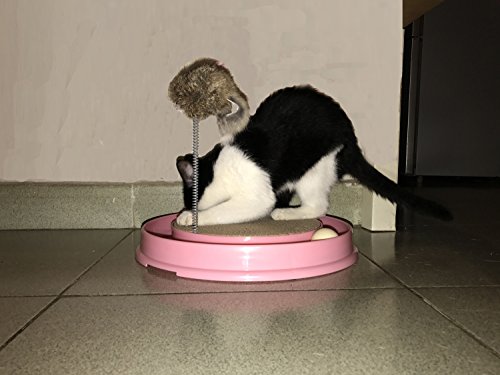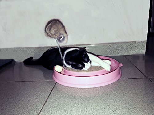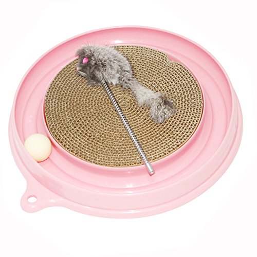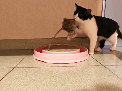 -. Feature : 3 in 1 Turbo Scratcher with mouse swatter cat toy offers hours of fun and exercise for your cat while reducing potential furniture damage due to scratching. Scratch pad is replaceable. / Intellectual Cat Toy: Balls Not Pull Out Easily, when the cat catches the ball with paws, the ball will roll around the track, keep your cats occupied and entertained / The Turbo Scratcher has a channel for a small ball your cat can nudge with its nose or shove with its paw / Non-skid pads at bottom, does not damage the floor / 1 base (16" diameter), 1 scratch pad and 1 ball and 1 Mouse Swatter; place ball in track for hours of fun - entertain your cat and keep away your furniture from scratching!