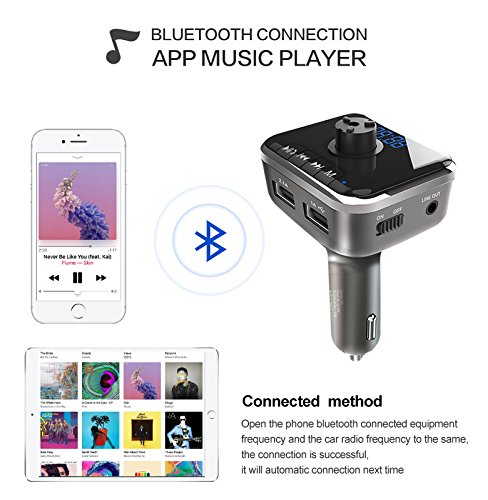 Compatible for any device with bluetooth feature: In-car audio music player, FM transmitter works for cell phones, smartphones, iPhone, ipad, ipod, tablets and more, supporting for micro card and MP3, MP4 players