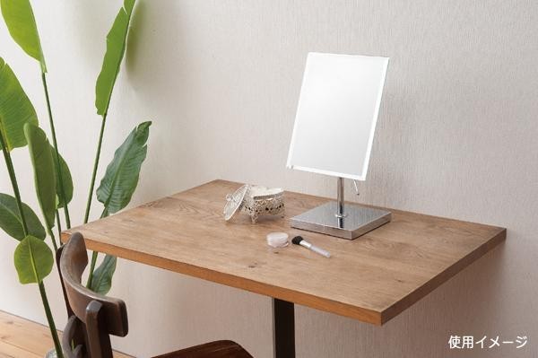 | ミラー面が大きくお顔はもちろん、デコルテまで映るので、メイク・ヘアセット・アクセサリー小物を合わせるなど全体のバランスをチェックできます。角度調節はミラー面を触れることなく、右下のレバーで動かすことができます。 |