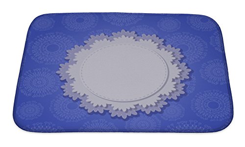 Gear New No Slip Microfiber Memory Foam Blue Square Card with Round White Vignette Bath Rug Mat, 24" X 17"