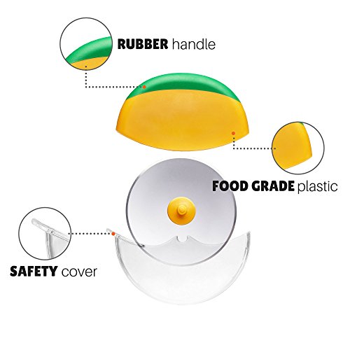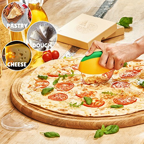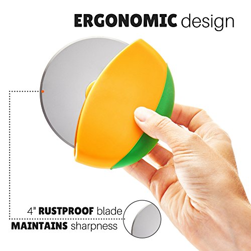 Product Description Highly protective, reliable, durable, easy to use and to clean, the Impressive Cooking premium quality stainless steel pizza cutter can be used for cutting pizza, dough, cookies, pies, Belgium waffles with one simple cut with no need to cut back and forth. - Our unique pizza cutter can do all the hard work for you. - Angled wheel offers optimal comfort and performance. - Designed to protect your fingers, comfortable to hold and control. - 4-inch food grade stainless steel super sharp blade will not rust, crack, pit or scratch. - Creative gift box will amaze your friend or a family member. - Cuts anything soft fitting the blade. - BPA free, non-toxic and safe for food pizza cutter with cover. - Pizza cutter and slicer has plastic ergonomic handle. - This pizza cutting knife can be cleaned in seconds or washed in the dishwasher. - Easy to store pizza cutter roller. - The pizza cutting knife is individually packaged. We also offer you no questions asked 60-day warranty to let you buy with confidence. Order now and get this incredible number one stainless steel pizza cutter by Impressive Cooking delivered to you! 0