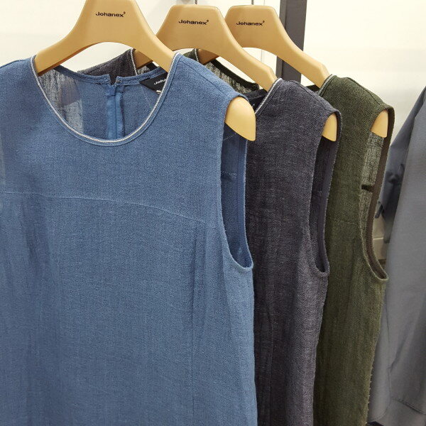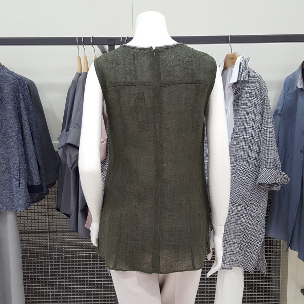 시원한 마 민소매로 신축성 없는 허리라인 들어간 상품입니다