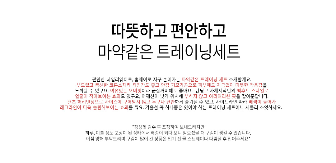 .같은 사이즈라도 체형에 따라 핏감이 조금씩 다를 수 있습니다.