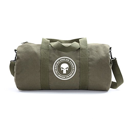 -. Brand : Army Force Gear -. Department : unisex-adult -. Feature : 2 inch Wide Adjustable Shoulder Strap, Comfortable to Carry, Brass hardware / Enormous main compartment that can fit clothes, water bottles, car keys, wallets, and many more. / Twin carry on handles, 2 zipper pull tabs, Stonewashed 100% cotton canvas / Great For Camping, Traveling, Hunting, Backpacking, going to the gym, and many more. / Dimensions: 19" x 9" x 9" (Medium), 24" x 12" x 12" (Large) -. Label : Army Force Gear -. Manufacturer : Army Force Gear -. Model : AFD-362-P -. MPN : AFD-362-P -. PackageQuantity : 1 -. PartNumber : AFD-362-P -. ProductGroup : Apparel -. ProductTypeName : LAGE -. Publisher : Army Force Gear -. Size : One Size -. Studio : Army Force Gear -. Title : Punisher Skull God Will Judge Our Enemies We'll Arrange The Meeting Skull Duffel