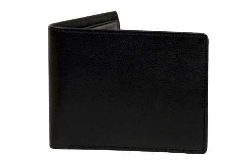 Sakkas Mens Authentic Leather Bi-fold Wallet with 2 Hidden Pockets, 2 Id Windows and 4 Credit Card Slots - Comes in a Gift Bag -Black