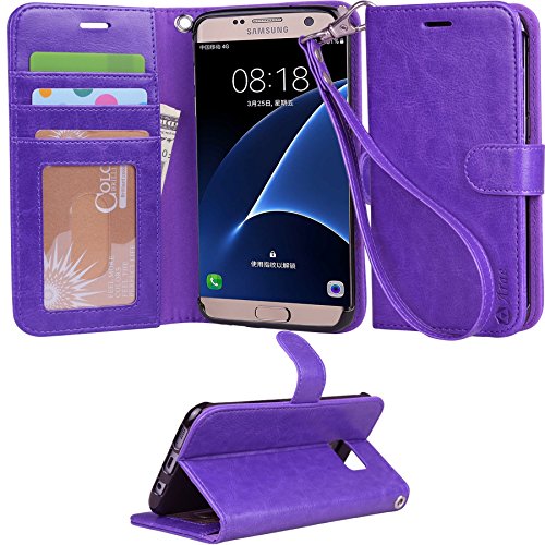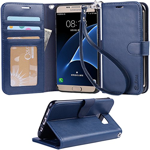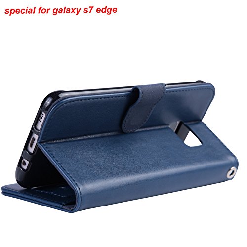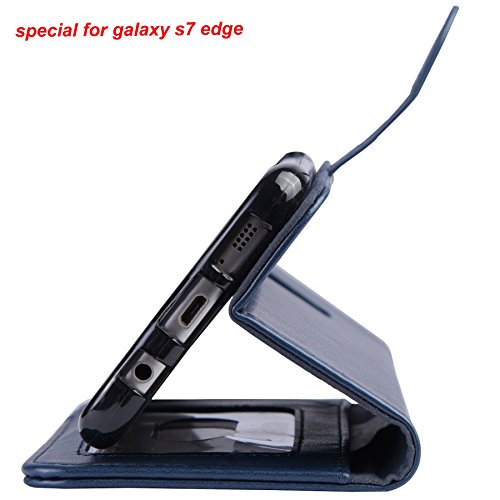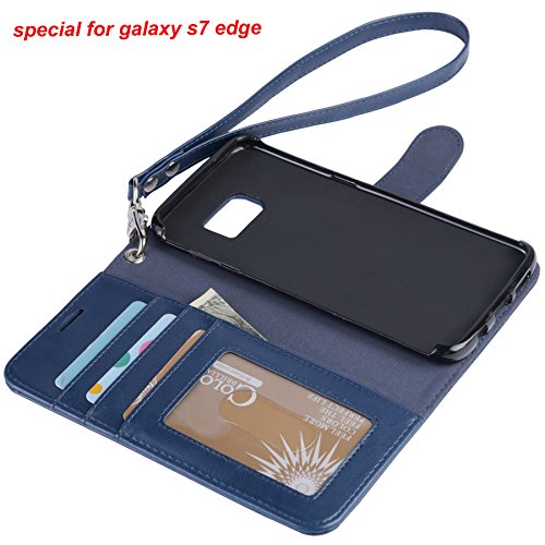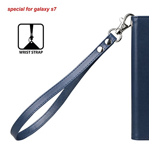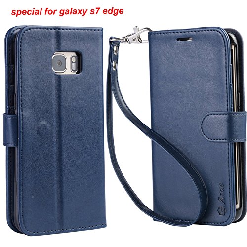 Galaxy s7 edge Case, Arae [Wrist Strap] Flip Folio [Kickstand Feature] PU leather wallet case with ID&Credit Card Pockets For Samsung Galaxy S7 edge (Blue)