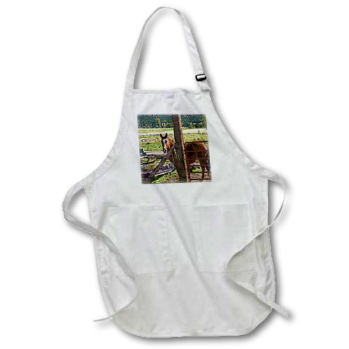 3dRose apr_49530_1 Brown Horse Behind Fence in Southern Utah with Blue Tins Full Length Apron with Pockets, 22 by 30-Inch, White