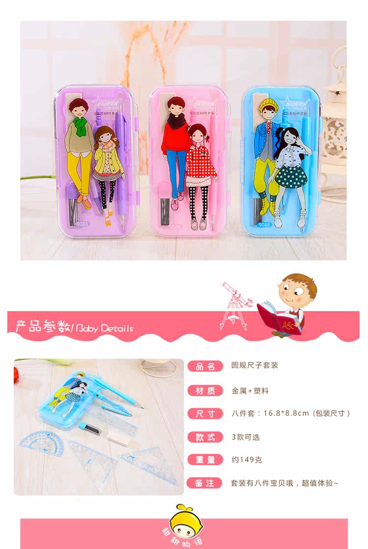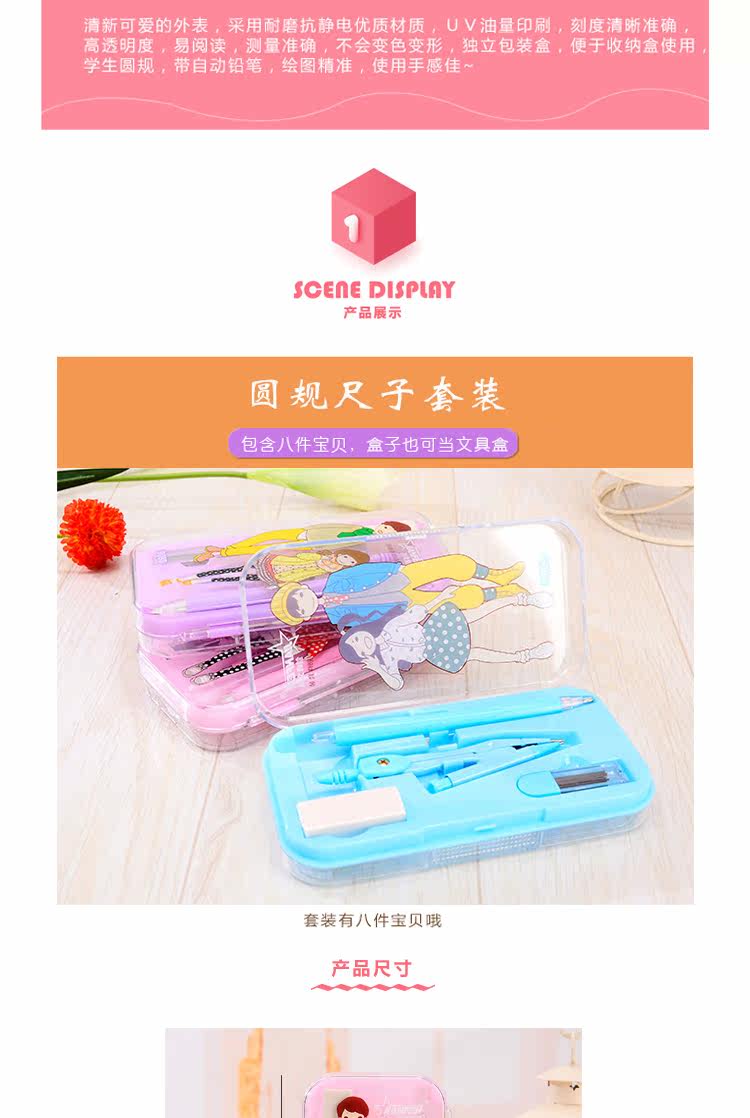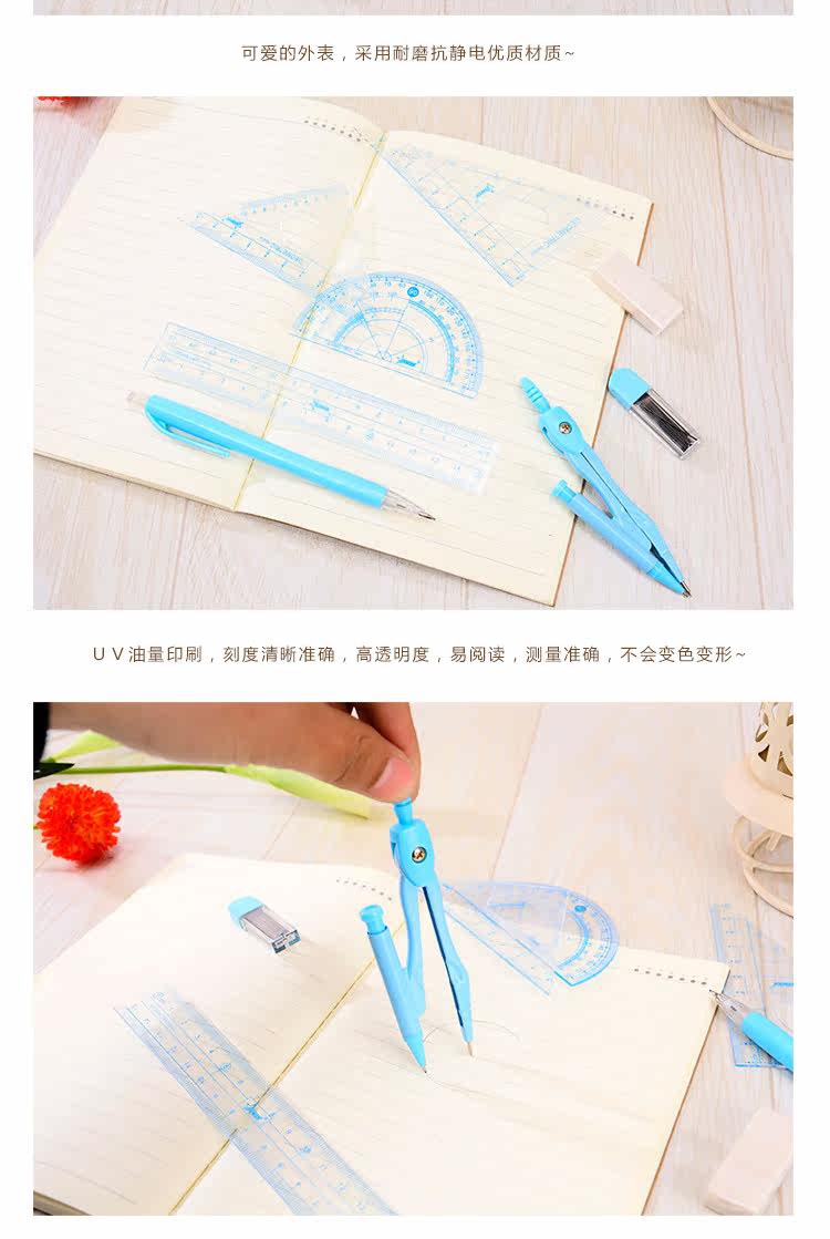 考试圆规尺子套装中小学生考试绘图用直尺三角板量角器尺规8件套