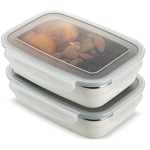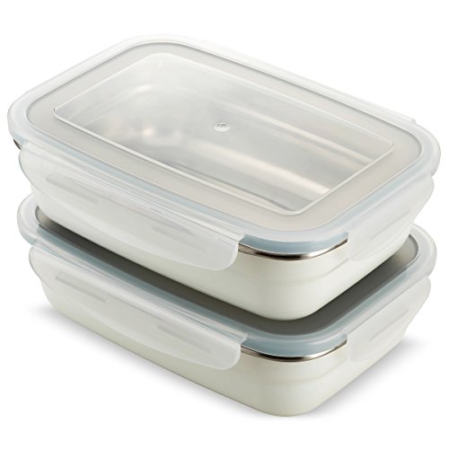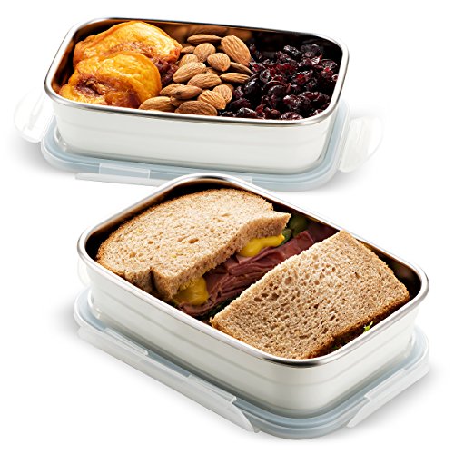 Komax Stenkips Stainless Steel Food Storage Lunch Container 18.9oz. (set of 2) - Airtight, Leakproof With Locking Lids - BPA Free Plastic - Freezer and Dishwasher Safe