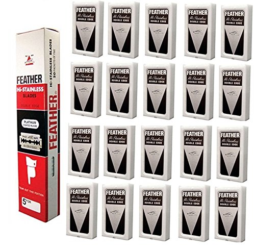 100 ct Feather hi stainless Double Edge Blades in black red pack - Made in Japan and 10 ct Viking Sword DE Blades Pesonna Israel Made