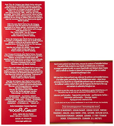 - Roger & Gallet Perfumed Soap Jean-Marie Farina 100g allows you to rediscover the perfumes and freshness of an Italian garden, and to imagine lemon and orange trees absorb the sun. Results of a unique manufacturing process, this perfumed soap owes its fr