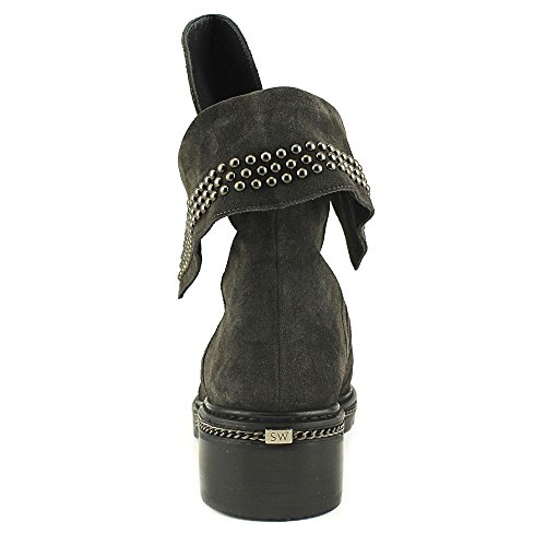 (Stuart Weitzman)/Women's/Boots/DIRECT FROM USA/Stuart Weitzman Yadastud Women Round Toe Canvas Gray Ankle Boot