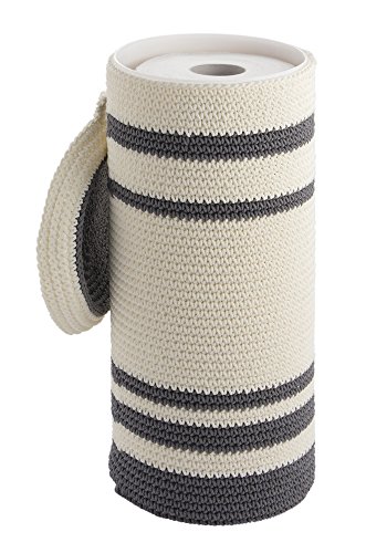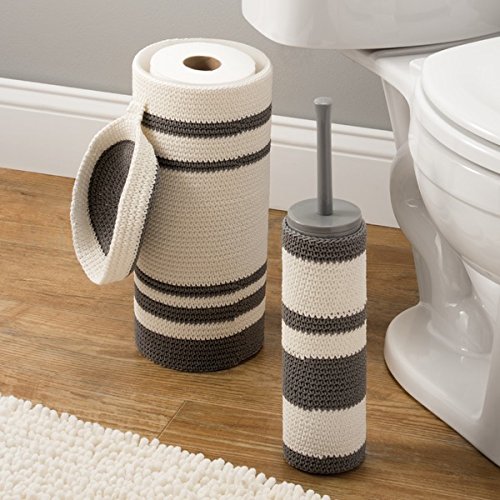 mDesign Knitted Free Standing Toilet Paper Roll Holder for Bathroom Storage - Large, Gray/Ivory