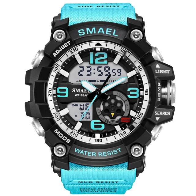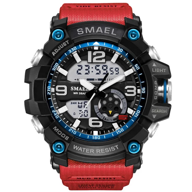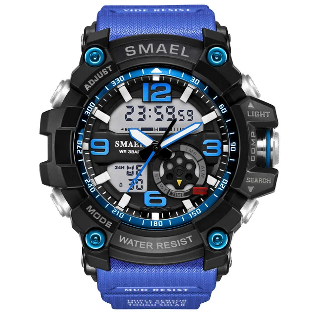 | [해외] Smael 남성 시계 럭셔리 크로노 그래프 아날로그 디지털 남성 시계 방수 군사 듀얼 디스플레이 시계 Relogio Masculino |
