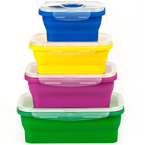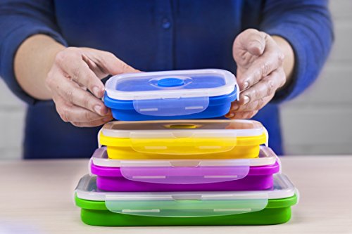 SMARTPAN Food Storage Containers - Set of 4 Collapsible Bento Boxes | No BPA | Microwave, Freezer and Dishwasher Safe | Easy To Clean | Durable, High Quality