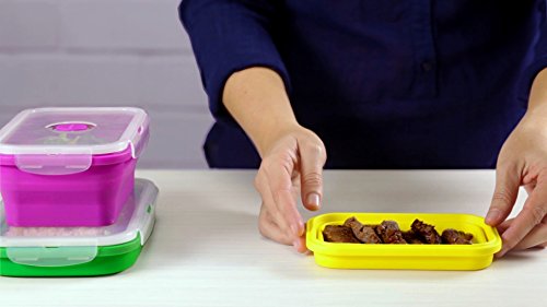 - SAVE SPACE: The Food Storage Collapsible to 1/3 its original size for easy compact storage. Saves you 60% more space! No more cluttered Tupperware cabinet!