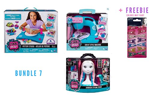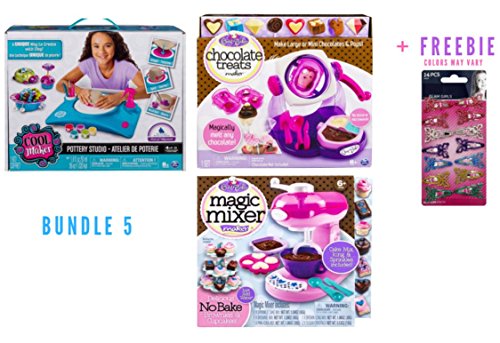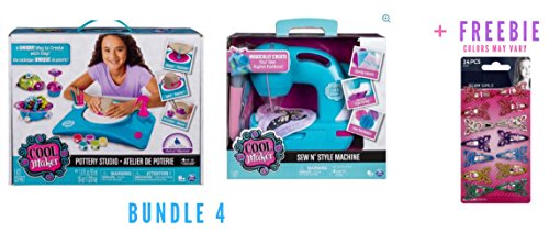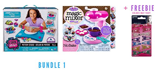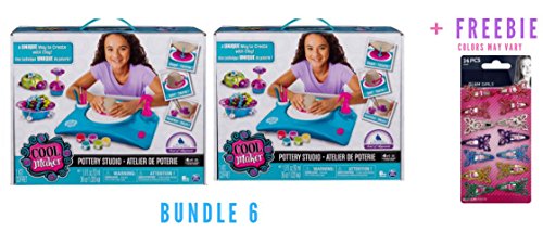 Easily sculpt endless possibilities with the Cool Maker Pottery Studio! This innovative studio makes crafting and designing clay projects incredibly easy and fun for kids to do. Cool Maker has turned pottery upside down – simply place a clay disk onto the turntable, gently spray it with water and watch it spin and take shape in your hands. Cool Maker Pottery Studio’s unique design helps you create perfectly shaped pottery by letting gravity do the work for you. And once air-dried, the creativity really begins! With multiple sculpting tools and 10 brightly coloured metallic paints, you can quickly customize each creation for a truly unique look. It’s pottery made easy! The Cool Maker Pottery Studio comes with everything you need to start right away. Create 6 beautiful projects, including: A Jewelry Holder, Puppy Picture Holder, Turtle Dish, Smart Phone Speaker, Cupcake Pencil Holder and Pencil Topper. Discover a whole new way to create with clay with the Cool Maker Pottery Studio!Feature