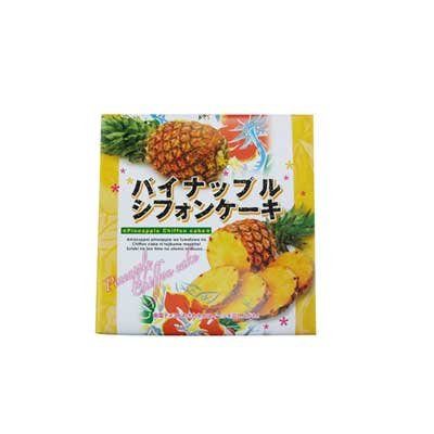 原材料:卵、小麦粉、砂糖、カスタードクリーム、(砂糖、水飴、還元水飴、ショートニング、乳等を主要原料とする食品、卵、マーガリン)、食品油脂、製菓用油脂、水飴、乳等を主要原料とする食品、パイナップル果汁、トレハロース、加工澱粉、膨張剤、香料、炭酸Ca、酸化防止剤、(V.E)、リン酸塩(Na)、着色料(クチナシ、アナトー、ウコン、カロチン)、乳化剤