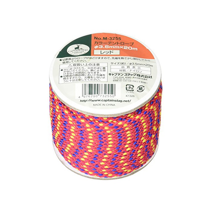 원본상품명: キャプテンスタッグ キャンプ カラ? テント ロ?プ 紐 ?3.5mm×20m レッドM-3255