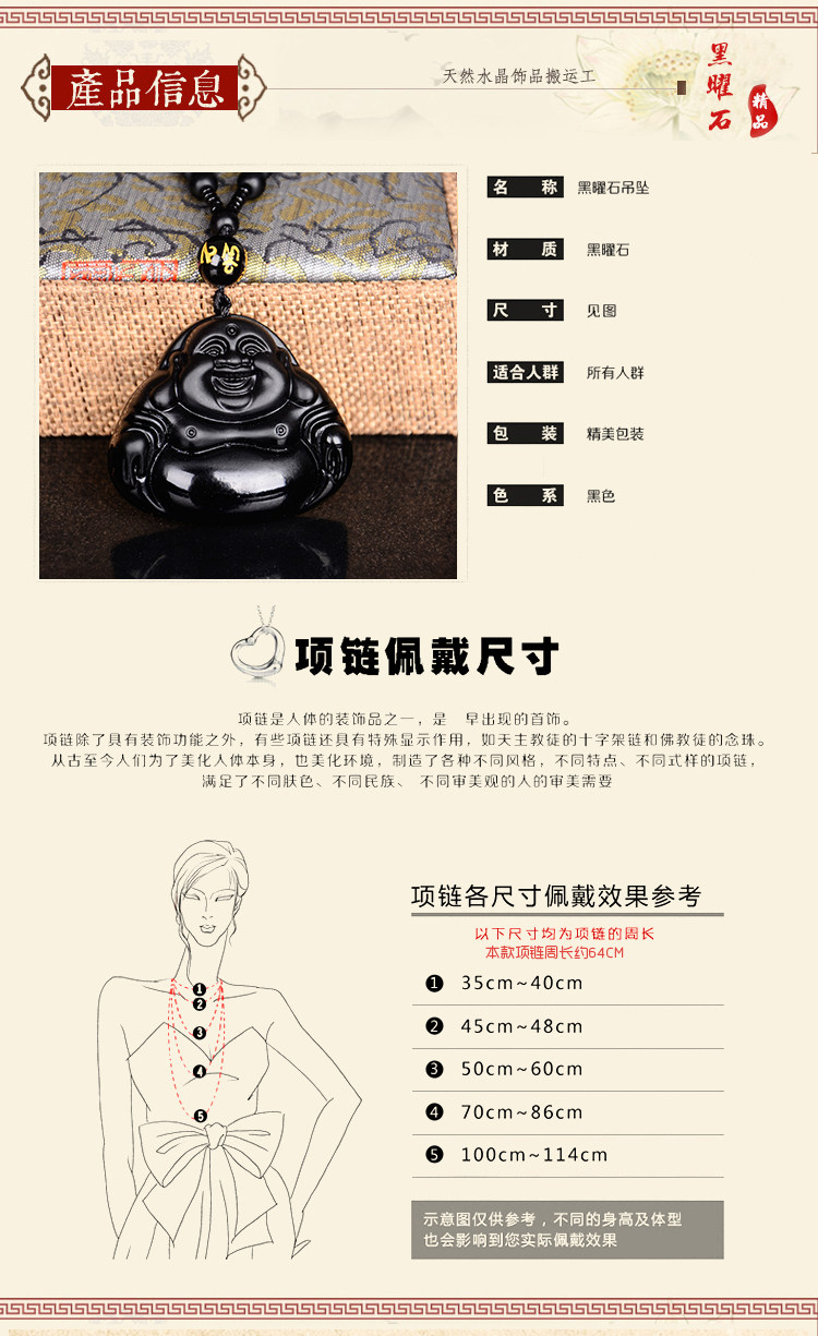 黑曜石自在佛吊坠磨砂男女款项链招财大肚晓弥勒佛毛衣辟邪保平安