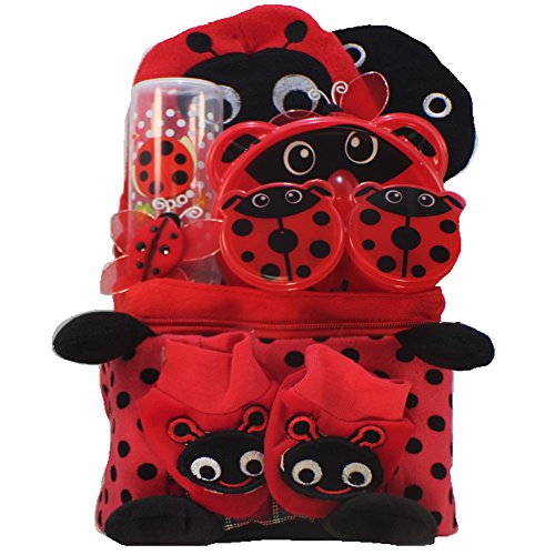 -. Feature : This little lady bug -a-boo plush insulated bag is a gift all in its self! / So handy for mom to grab and take on the go to keep baby bottles warm or cold as needed / It's even better filled with adorable ladybug baby necessities / Each basket is crafted with attention to detail, shrink wrapped, tied with a bow for presentation, and ready for gift giving / To include a personalized message with your order, please mark gift during check out / So handy for Mom to grab and take on the go to keep baby bottles warm or cold as needed. / It's even better filled with adorable Ladybug baby necessities.