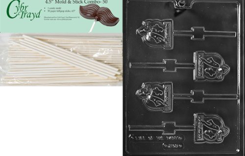 Cybrtrayd 45St50-J109 No. 1 Teacher on Apple Lolly Jobs Chocolate Candy Mold with 50 Lollipop Sticks, 4.5-Inch