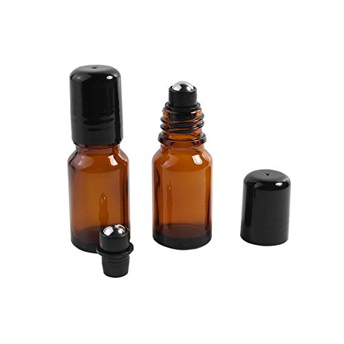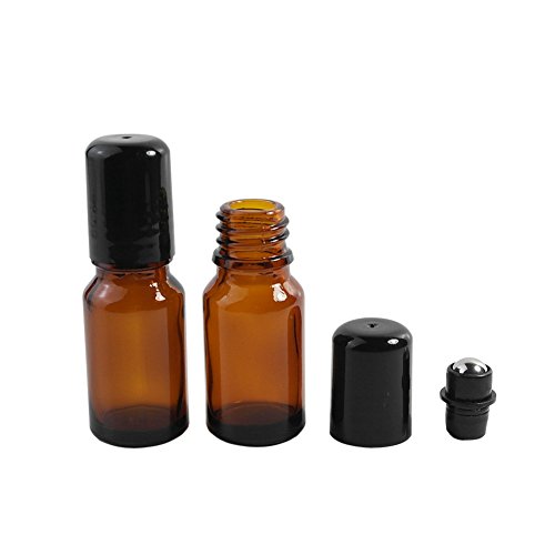 AxeSickle (Set of 5) Amber, 10 ml Glass Roller Bottles with Stainless Steel Roller Balls.