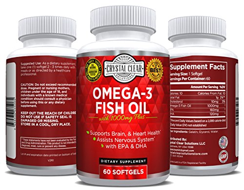 -. Feature : LIVE HEALTHIER- Fish oil provides nutrients that are important for maintaining a healthy body. It may help to support a healthy heart, help improve brain, nerves and vision function, promote joint flexibility, enhance mood & mental state, support hair and skin. / WORRY FREE - Manufactured in the USA at an FDA Registered Facility. Manufactured in a strict quality control environment. Crystal Clear Solutions Omega 3 Fish Oil is free of all harmful contaminates. Using only 100% pure sea-harvested pelagic fish oil, making this supplement high in EPA and DHA. Gluten Free, Non GMO. / SATISFACTION GUARANTEE - No Questions Asked! We are proud to bring you the highest quality Omega 3 available. So if you are not 100% satisfied with your Omega 3 Fish supplement capsules, just ask for a refund. Now you can have your very own in-home solution to feeling healthier. Try it RISK FREE RIGHT NOW!