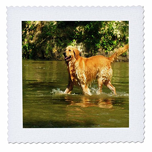 3dRose Print of Golden Retriever Painting - Quilt Square, 10 by 10-Inch (qs_203726_1)