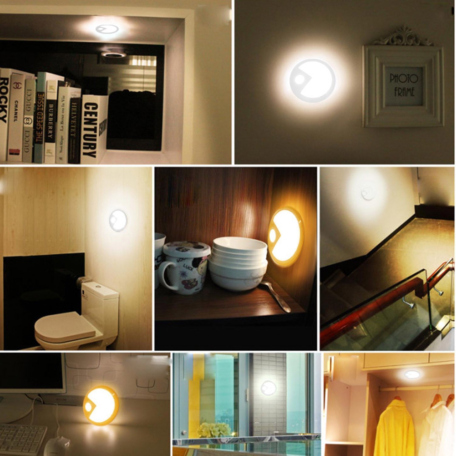 - Energy Efficient: PACMAN Porch Night Light Mount it anywhere! placed anywhere you need extra light using the adhesive 3M. Make closets and cabinets easier to access and stairways safer at night; Also looks delicate when place it on a desk