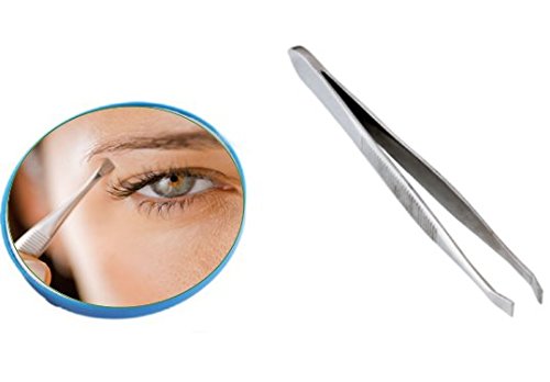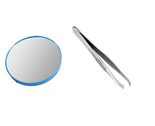 Cosmetic Beauty Makeup Magnifying Mirror x15 Round with Slanted Tweezer (Blue)