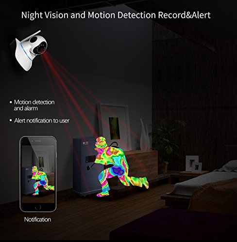 -. Feature : MULTI-PLATFORM VIEW: Free apps for Android and iOS, the live video footage can be remote view via iphone/ ipad/ Android phone/ tablet/ PC, keep an eye on your loves and belongs anywhere anytime. / STUNNING VIEWING EXPERIENCE: Adjustable Pan/Tilt with horizontal angle 355°; vertical angle 120° gives you a full view of any room. 3.0 megapixel lens capable of streaming video at 1280 x 720p HD quality. And built-in auto IR-CUT filter can provide clear and exquisite image with true color display. / 24/7 LIVE VIDEO STREAMING AND MOTION DETECTION: Continuous day/night surveillance is accomplished with 12 powerful IR-LEDs for night vision up to 32ft. Motion detect sensibility can be adjusted yourself, when monitor is detected or alarm is triggered, instant email notification will be sent. / TWO-WAY AUDIO: Built-in speaker and microphone, not only can you see what is happening in front of your camera, also you can hear and speak.Tell your dog to get off the couch or tell intruders that the police are on the way. / EASY SETUP AND VERSATILE STAND: Sonic Transfer Technology featuring One Key Wifi Configuration makes setup so quick and easy.Just plug in the power cable, download the Eye4 App and set it up from your Android or iOS device. The Cam stand can go on a wall, tripod or shelf, or you can stick it to something magnetic.