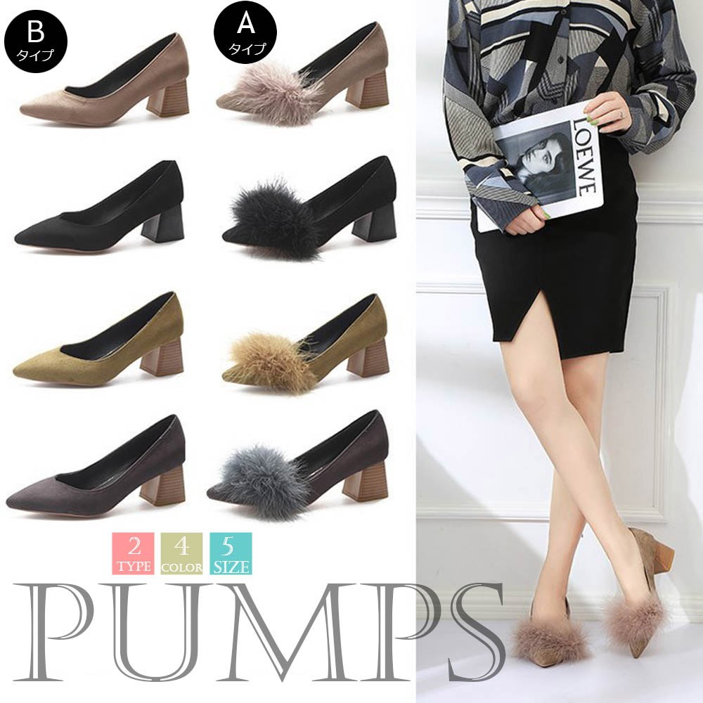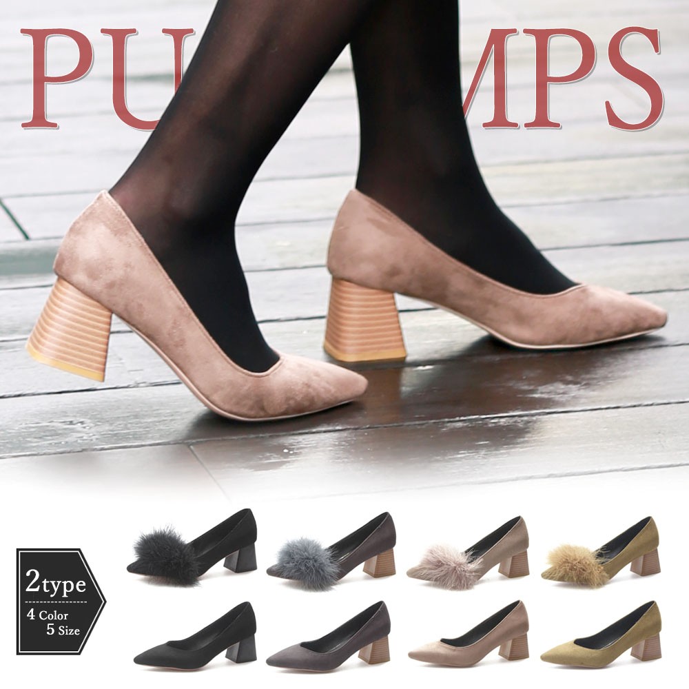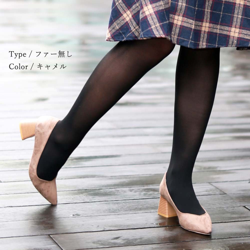 柔らかで上品な印象のスエード調素材を使用している太ヒールのパンプス