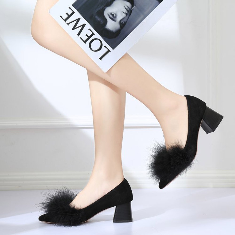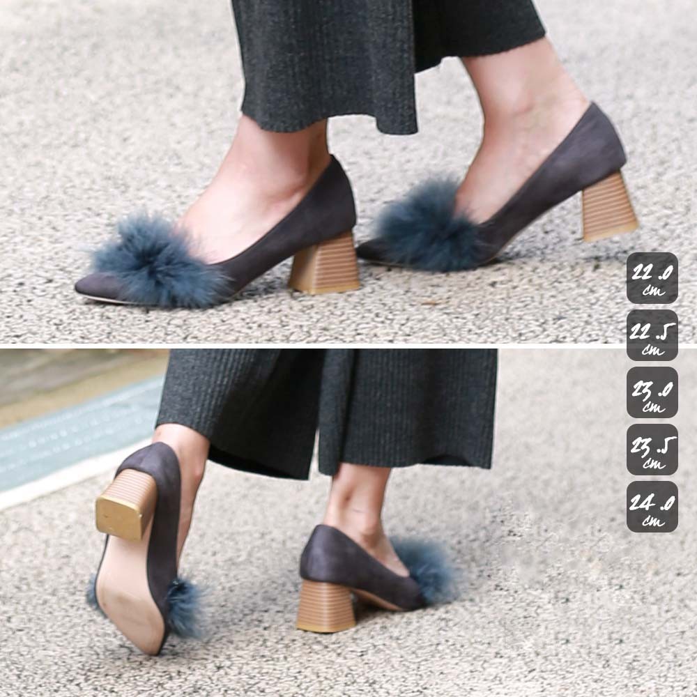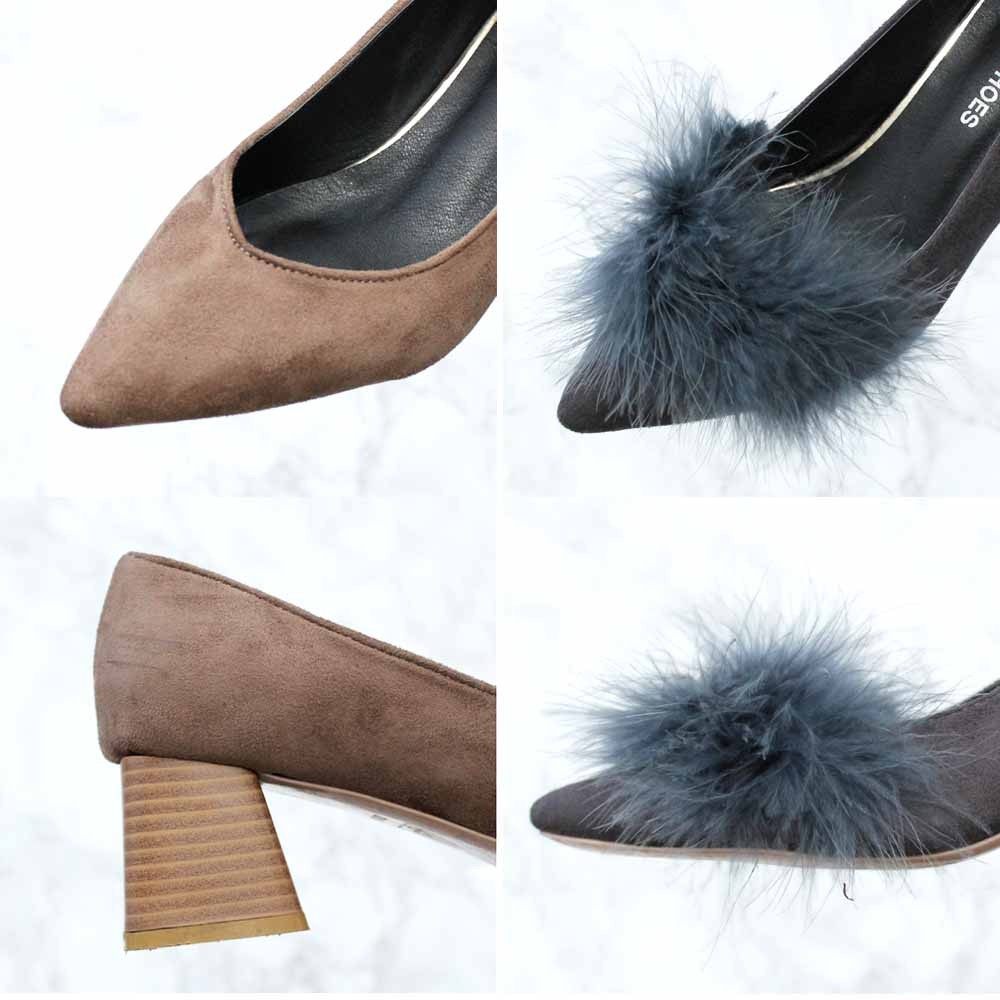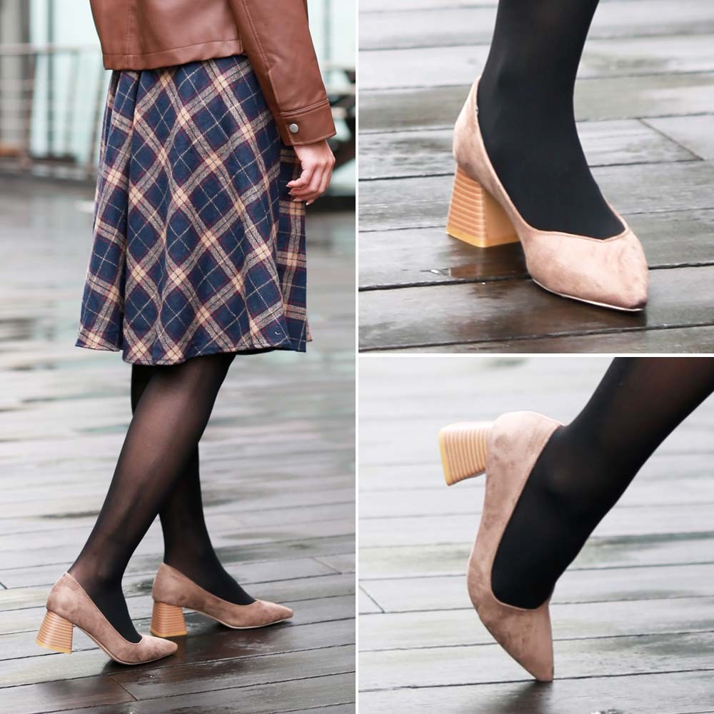 柔らかで上品な印象のスエード調素材を使用している太ヒールのパンプス