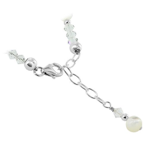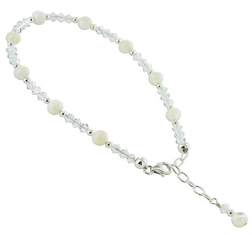 Charming and beautiful, this beaded anklet will add style to any outfit. Crafted from .925 sterling silver, the anklet is made up of 4mm clear Swarovski bicone crystals, 6mm round mother of pearl beads, and 2.5mm round silver beads. The anklet is adjustable from 9 to 11 inch and comes with a lobster claw clasp to help secure the anklet into place effectively. A welcome addition to any jewelry collection - get yours now. The anklet will be shipped in a FREE gift box making it easy for you to surprise that special someone. .