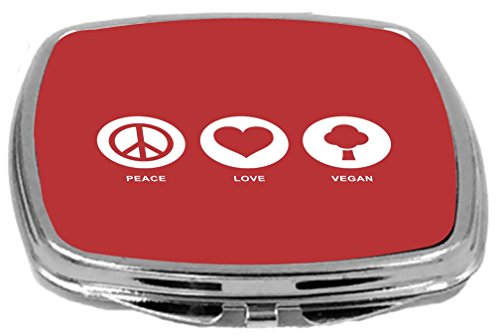 Rikki Knight Peace Love Vegan Design Compact Mirror, Red, 2 Ounce