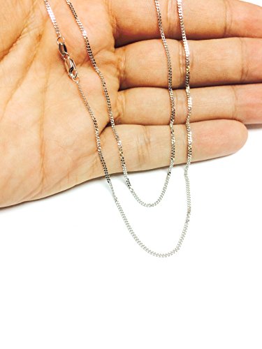 This 10K white gold Gourmette chain offers a modern necklace look. At a 1.0 mm thickness this chain is available in an 16" 18" and 20" inch length. Perfect for pendants and can also be worn alone. Includes a lobster clasp to uphold strength and comfort.Feature