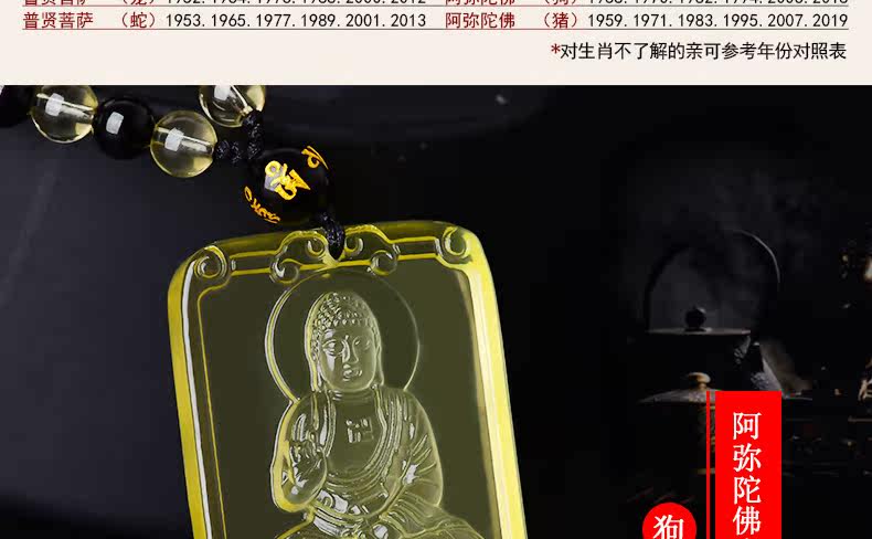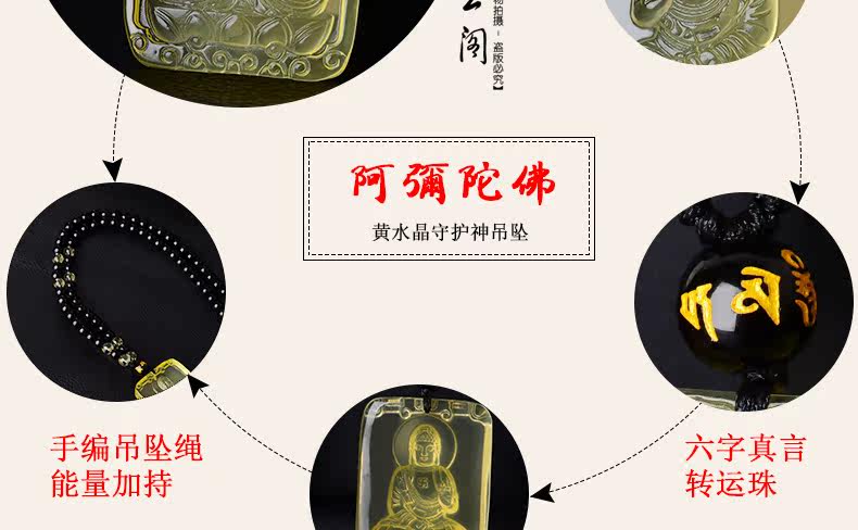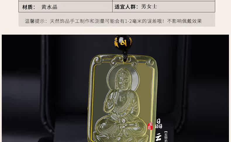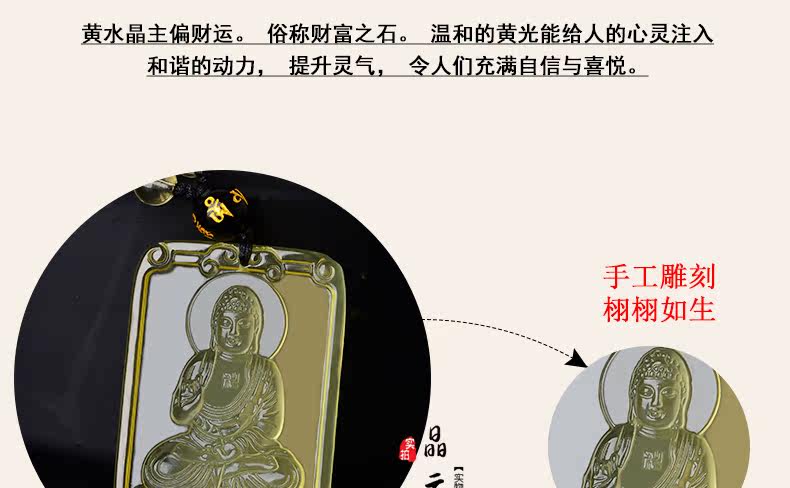 开光天然黄水晶阿弥陀佛吊坠 生肖属狗属猪本命佛男女士水晶项链