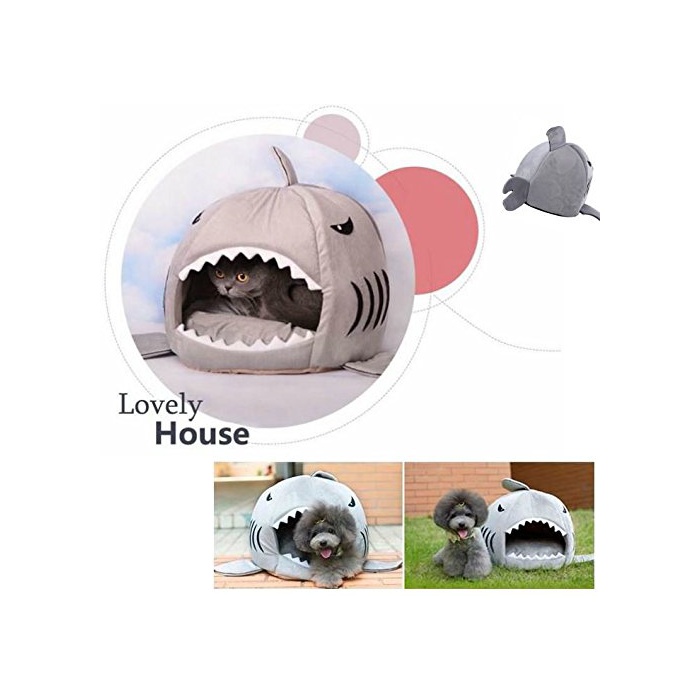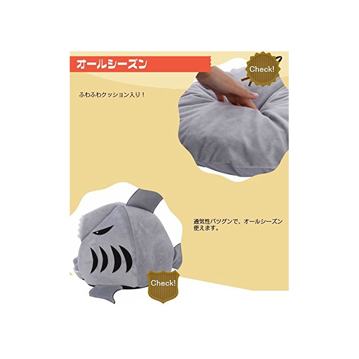 Univarc브랜드 【메이커 보증서 첨부속】 먹을 수 있 ## 것이다!?상어 타입 애완동물 베드 소형 개와 고양이용 카라비너 메이커 보증서 3점 세트!애완동물 하우스 돔형 베드 4