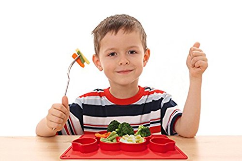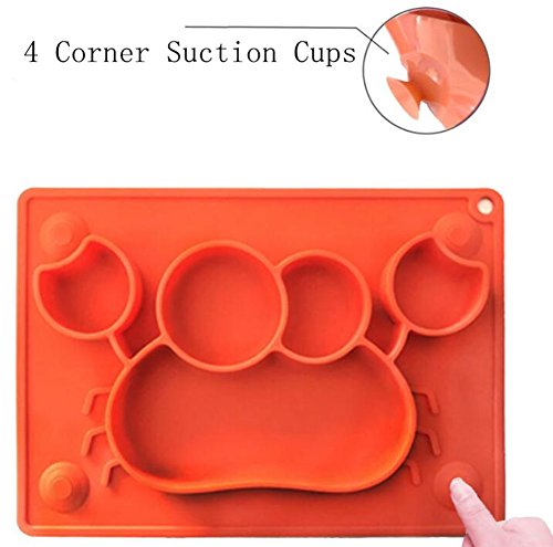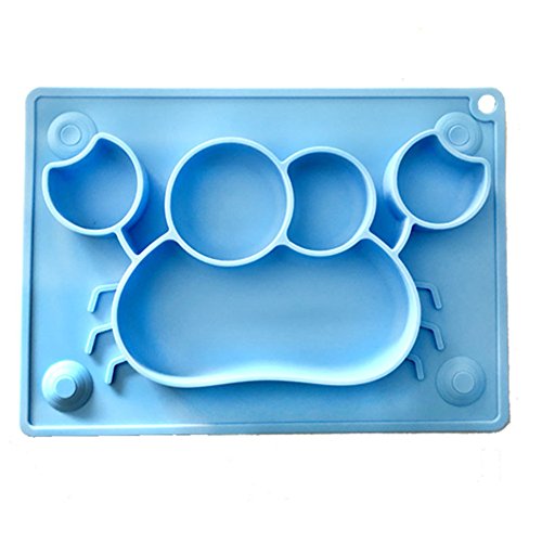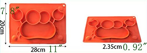 -. Feature : Unique Design: cute design with suction cup makes meal times more fun for kids. The mini size make it fits most highchair trays. / Quality and Safety Materials: FDA standard 100% Food Grade Silicone, safety for kids. / Easy to Carry: This mini kids' placemat with repeated use carry bag is lightweight and compact, so it is perfect for dinners out and travel. / Easy to use: Safe for Dishwasher, Microwave, Oven, and Freezer. / Make Feeding Easier: One-piece silicone baby/toddler placemat with combined plate Helps eliminate tipped bowls/plates and mealtime mess. If the table surface is SMOOTH FLAT enough, such as glass table, It can stick on the table, make feeding time easier.