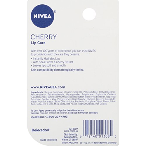 Nivea cherry lip care has a juicy cherry formula with a fabulous red tint that helps lips look and feel beautiful.